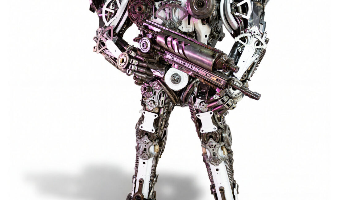 79″ Blue and Red Robot Sculpture