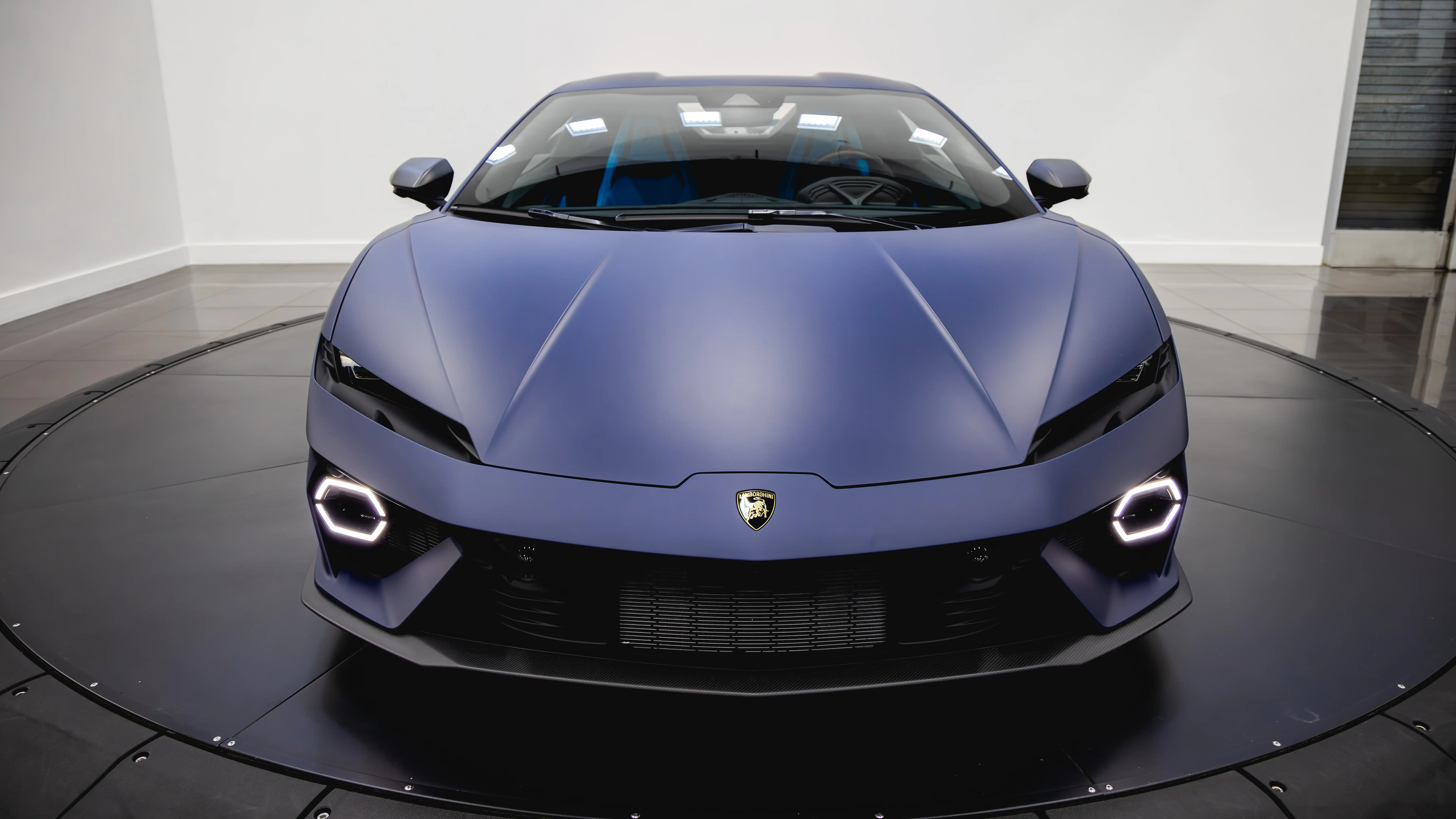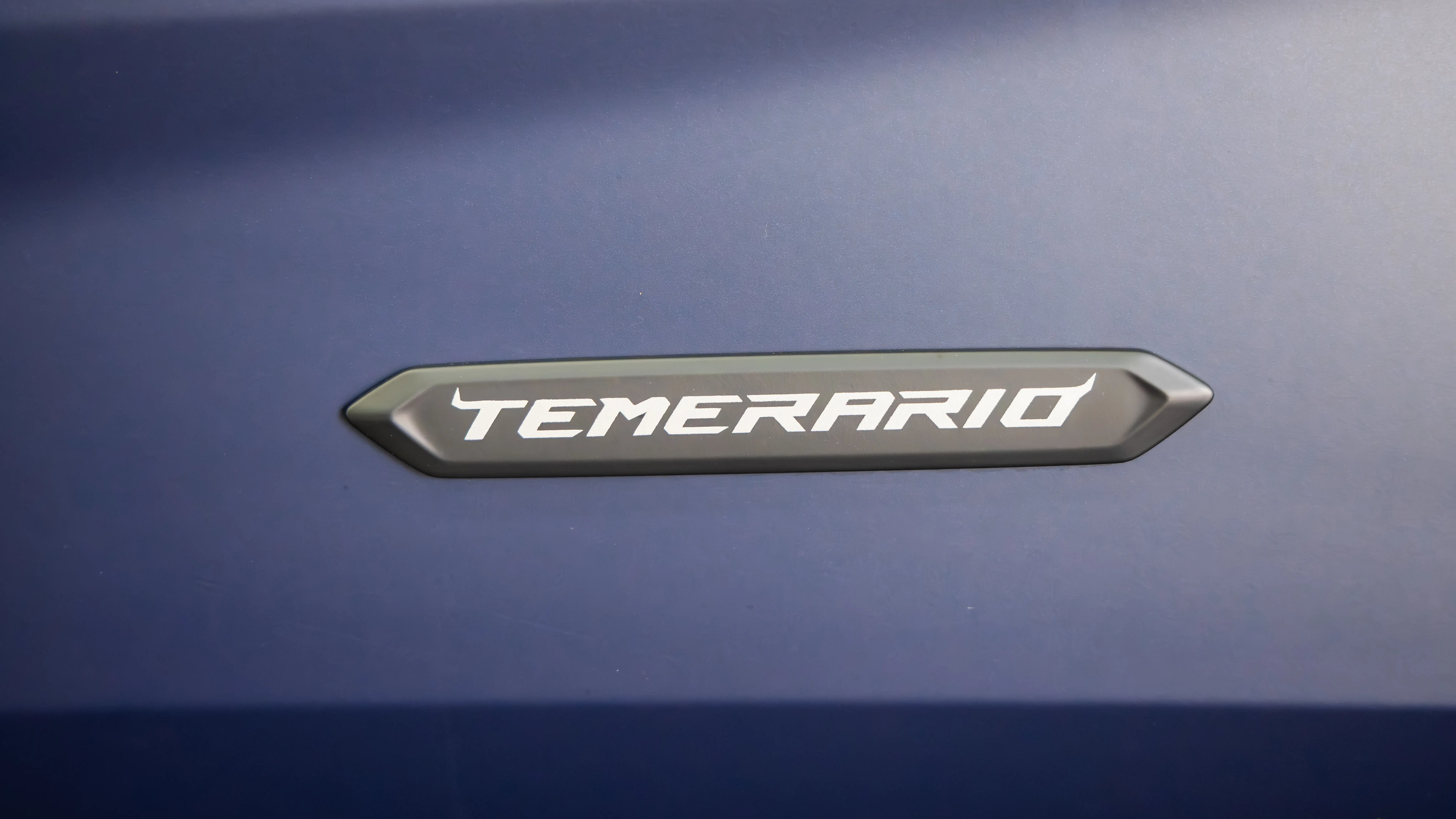 The exterior layout is entirely dictated by aerodynamic necessity and thermal management. The Temerario features a sharp, cab-forward wedge profile. The front daytime running lights utilize a distinctive hexagonal ring design, sitting aggressively low in the front fascia. This hexagon styling cue repeats throughout the vehicle, from the rear engine cover down to the massive central exhaust port.